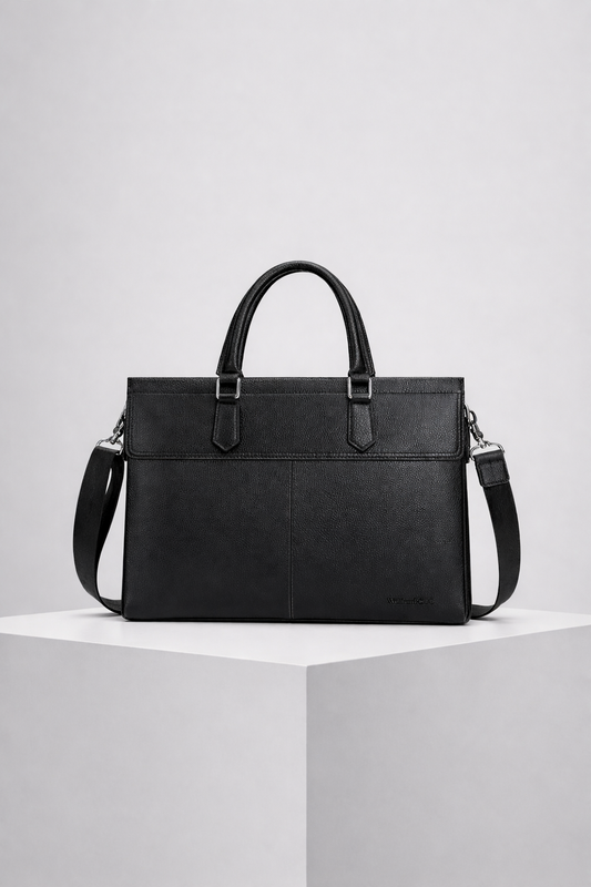 Primo Black Genuine Leather Laptop Sleeve – Handcrafted in India for MacBook & 14–16″ Laptops...