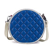 Blue/Black round quilted cross body bag With Adjustable Strap.