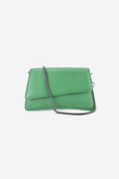 Green Leather Shoulder bag with a Detachable Metallic Chain.