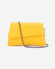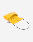 Yellow Leather Shoulder bag with a Detachable Metallic Chain.