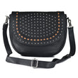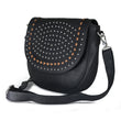 ADM Black sling style studded flap with detachable strap and silver D-Ring.