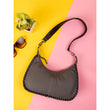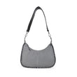 Grey/Black weaved shoulder bag with detachable strap and silver D-Ring.