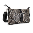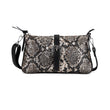Snake Print shoulder bag with detachable strap and silver D-Ring.