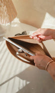Elevate your laptop protection with the Donella Tan Leather Laptop Sleeve, handcrafted by skilled artisans in India. Made from genuine premium leather, this slim, minimalist sleeve combines style, sophistication, and functionality. Perfect for MacBook and 13"-16″ laptops, it’s ideal for business meetings, office use, or casual work on the go. With its handcrafted Indian craftsmanship, this sleeve is a statement piece that enhances your professional and casual look. Available for delivery across India and worldwide.