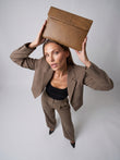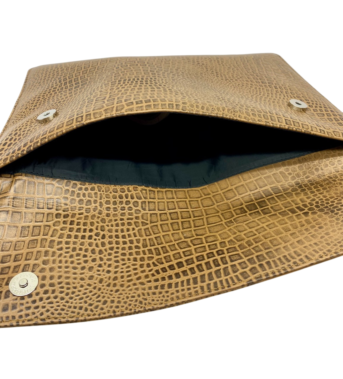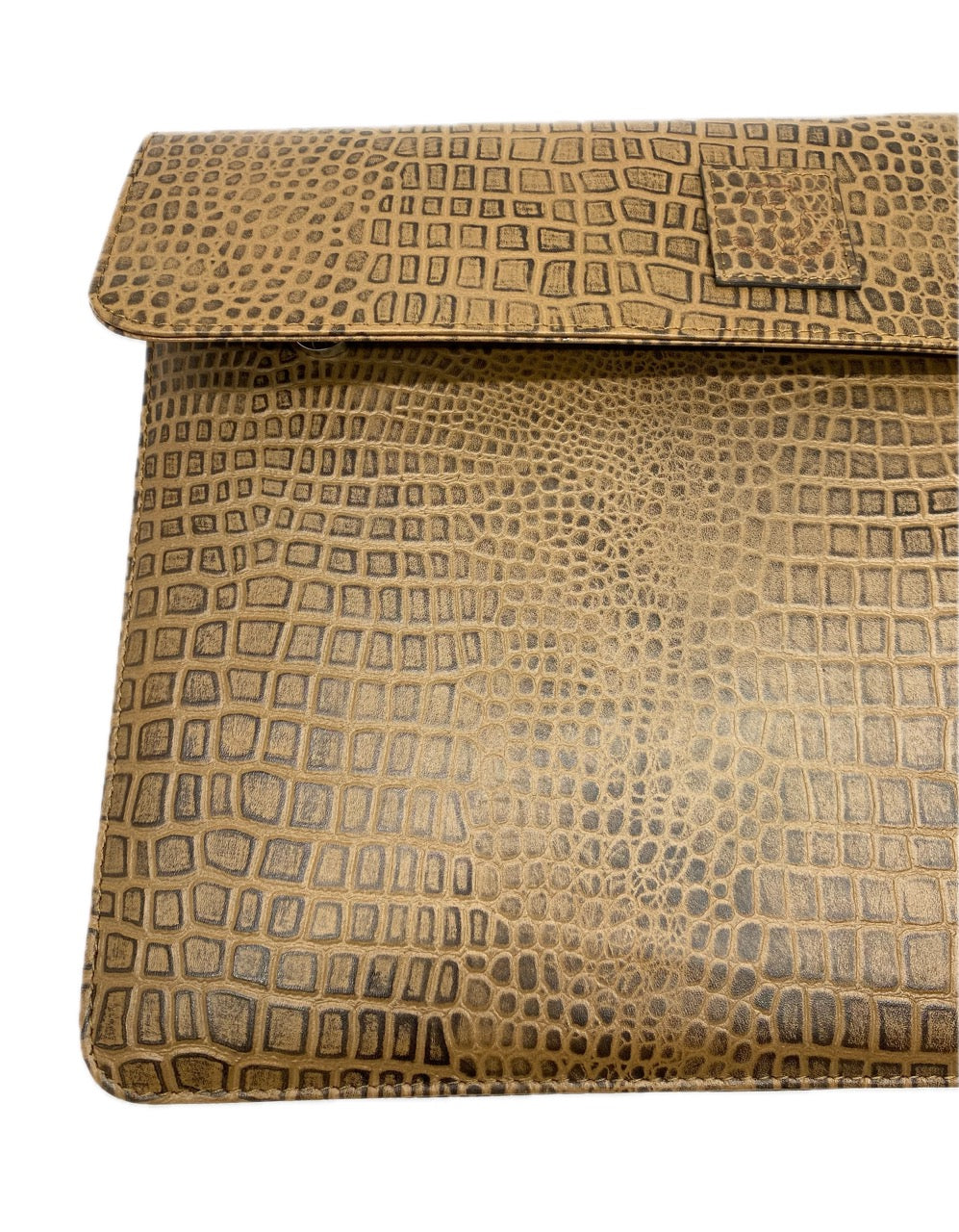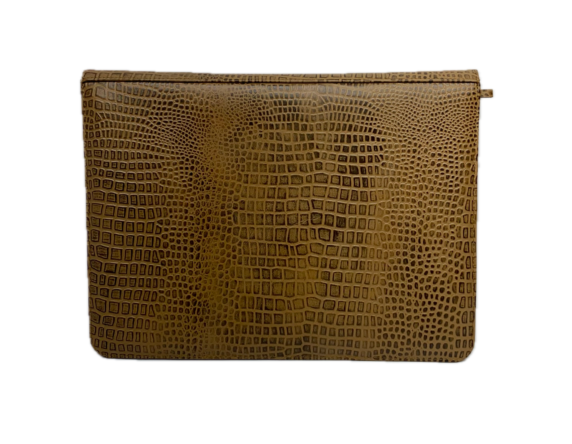 This premium leather laptop sleeve seamlessly blends sophistication with modern style. Crafted from high-quality leather, it features a sleek flap closure for added elegance while securely protecting your device. The minimalist, trendy design shields your MacBook or laptop from everyday wear and tear, while its slim profile makes it perfect for professionals on the go. With timeless appeal and durable construction, this leather sleeve ensures your laptop stays safe in style, whether you're heading to a business meeting or traveling.